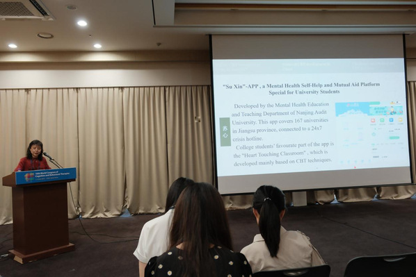 本次大會是CBT領域的一場大型國際學術交流活動,共有來自全球的3000餘名與會代表,國際CBT領域專家雲集。作為此次大會唯一特邀報告(Invited Address)的中國學者,王建平教授也是我校伟德国际1946源于英国特聘專家。一直以來,她關注教學部發展,與教學部開展緊密交流合作,提供了一系列專業指導與幫助。在此次大會上,她将“蘇心”APP作為當前中國科技賦能CBT的重要實踐經驗分享給全球與會者。